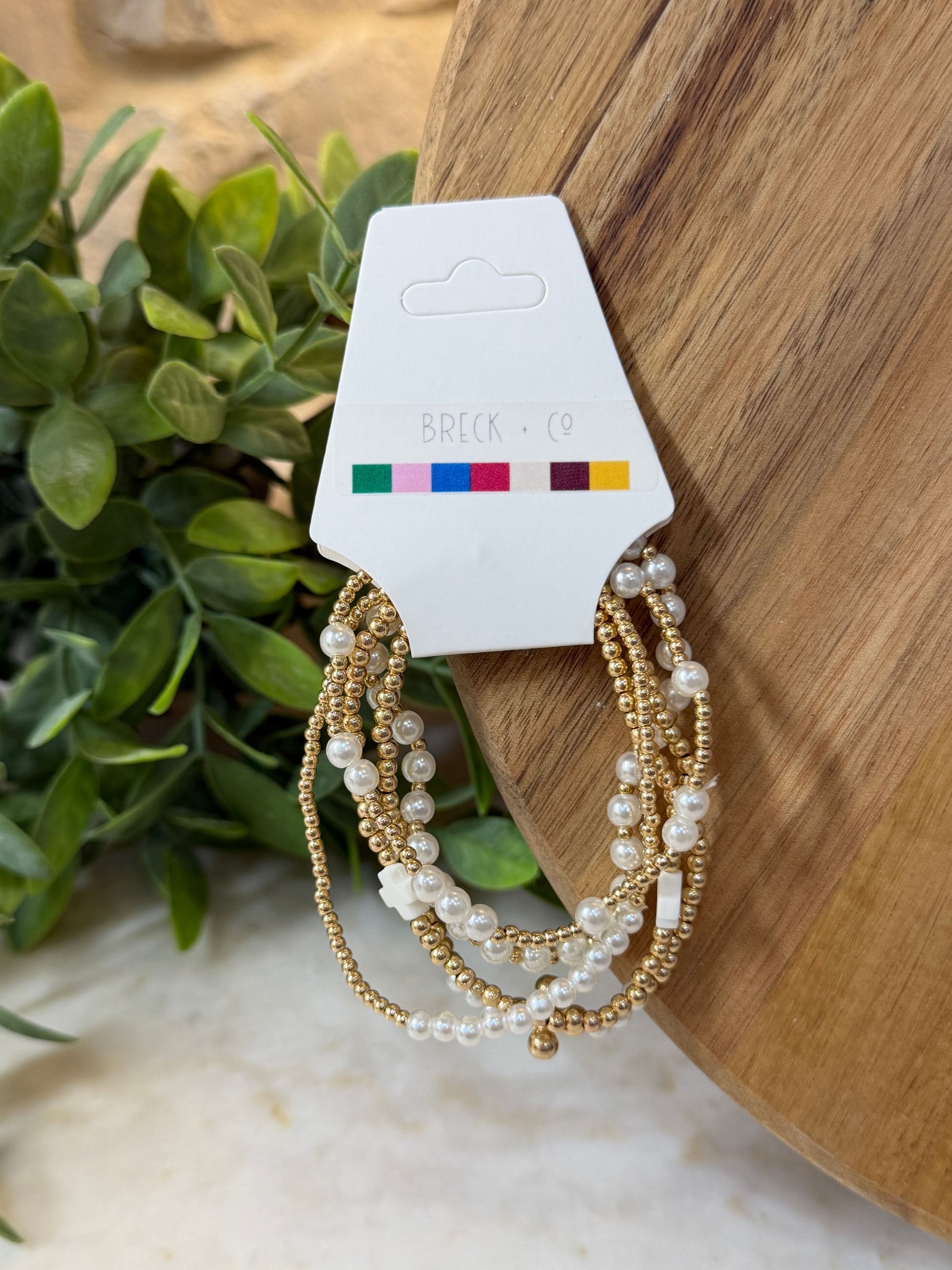 Gold and Pearl Stacked Bracelets